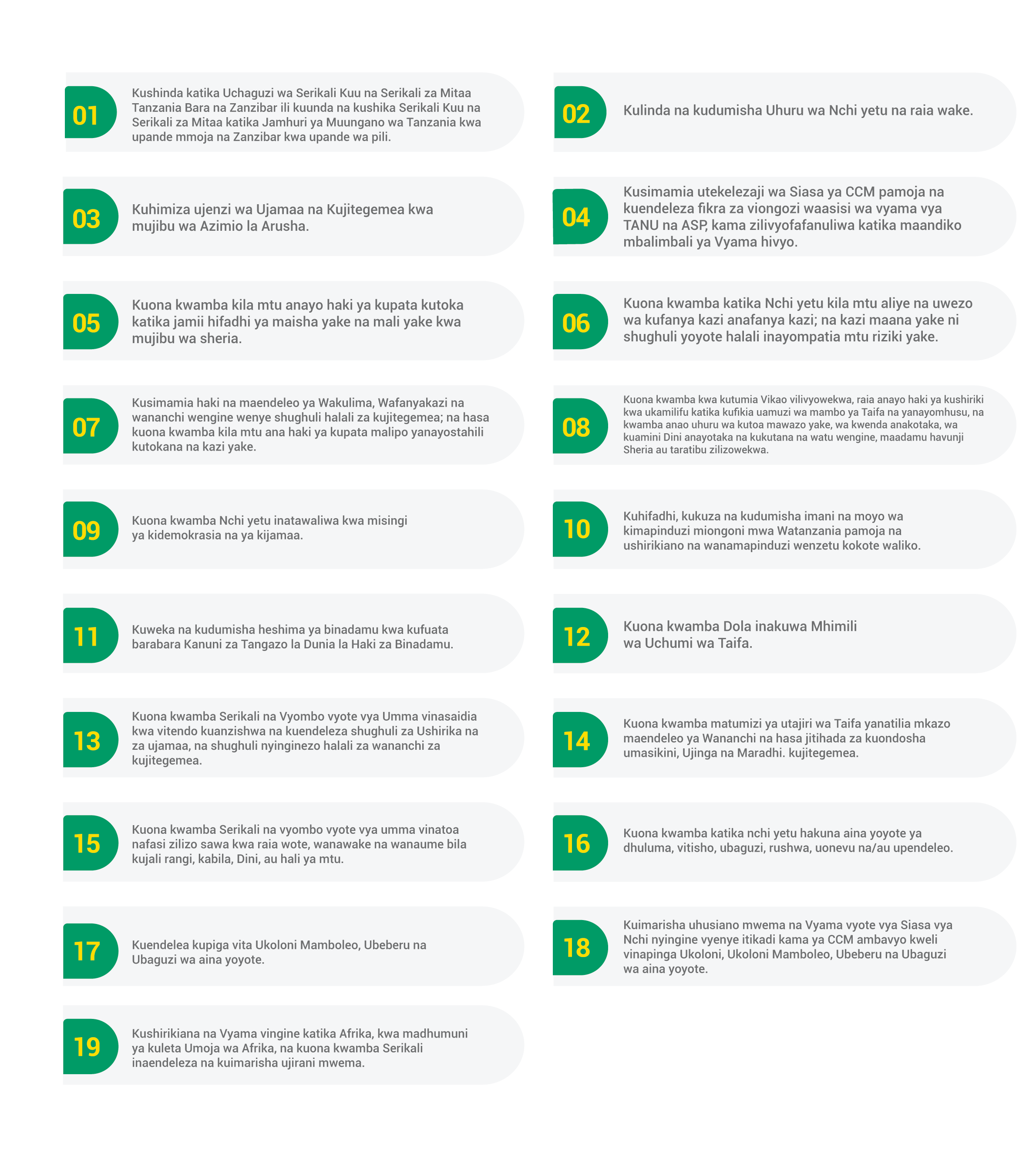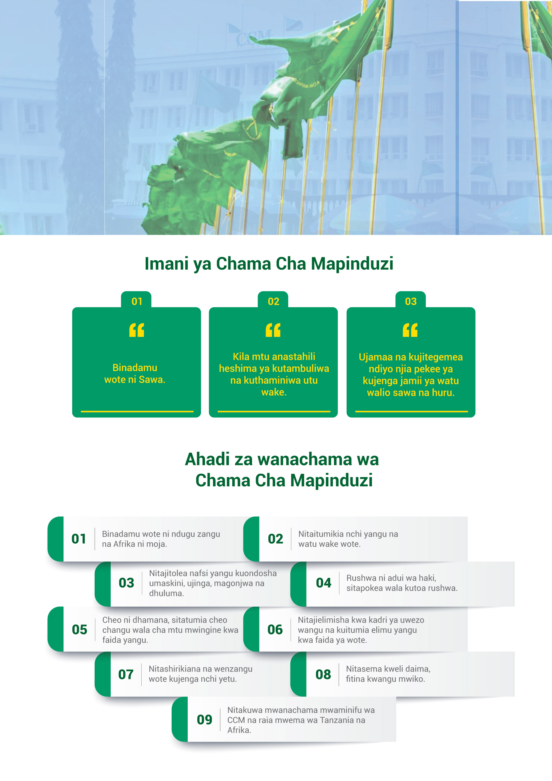 Chama Cha Mapinduzi (CCM) ni Chama kikubwa zaidi, kikongwe, chenye nguvu na mvuto barani Afrika, kinachoongoza kwa kuwa na Wanachama zaidi ya millioni 12. Ni Chama kiongozi cha ukombozi kilichoshiriki kupigania uhuru nchi nyingi zilizokusini mwa jangwa la sahara.